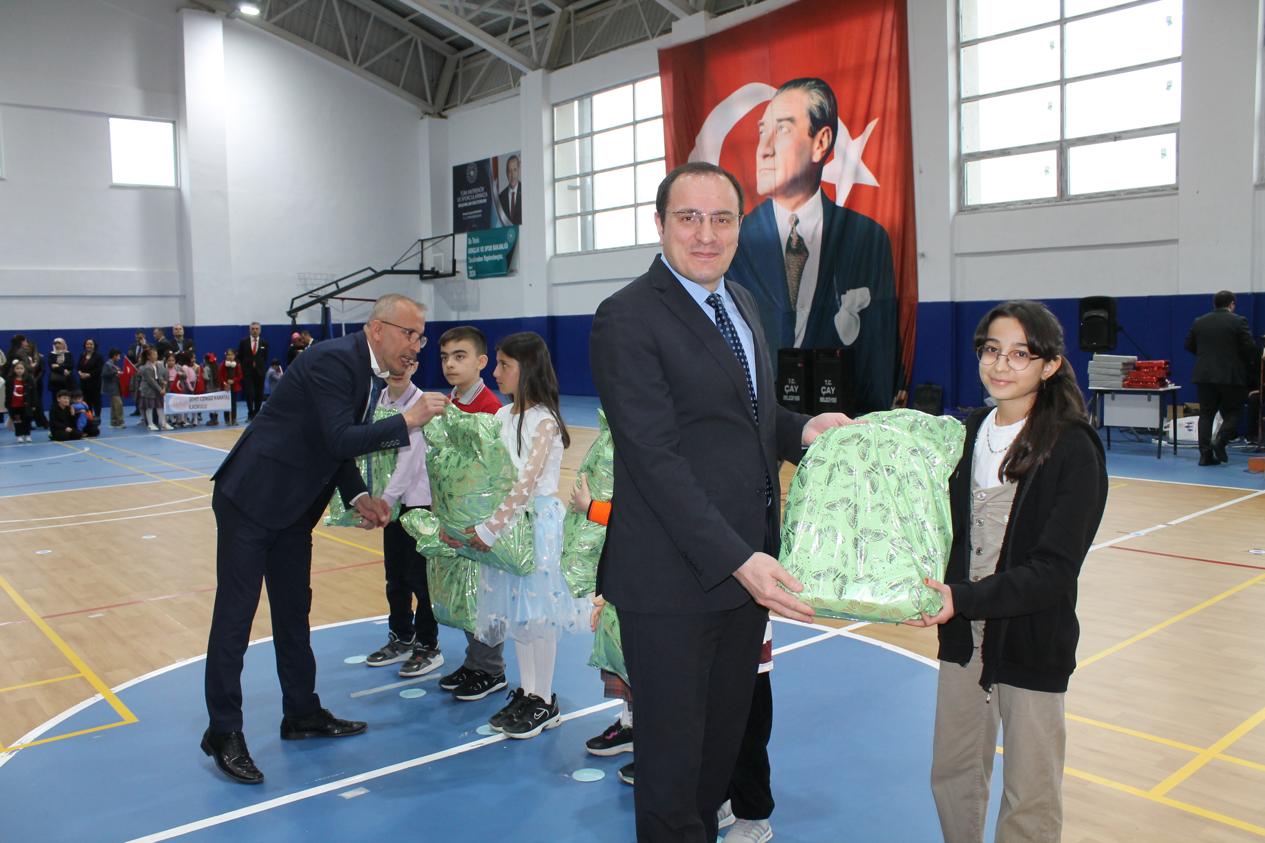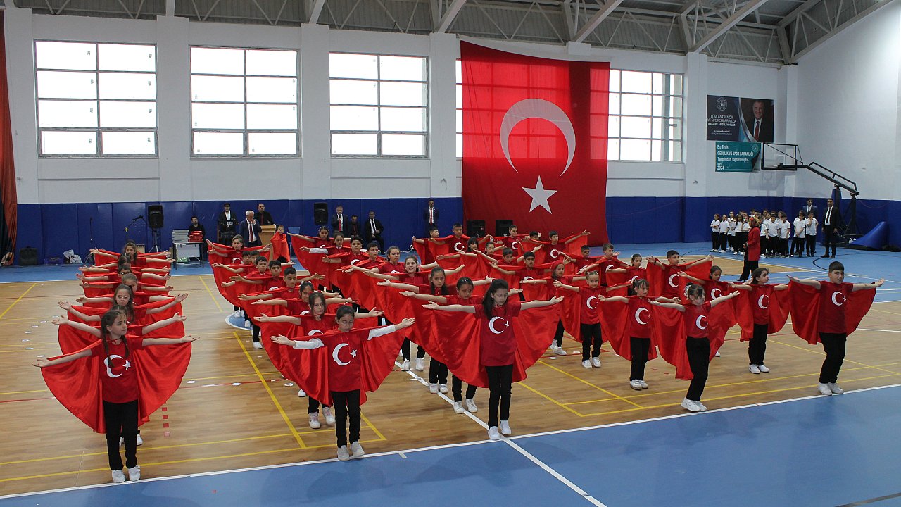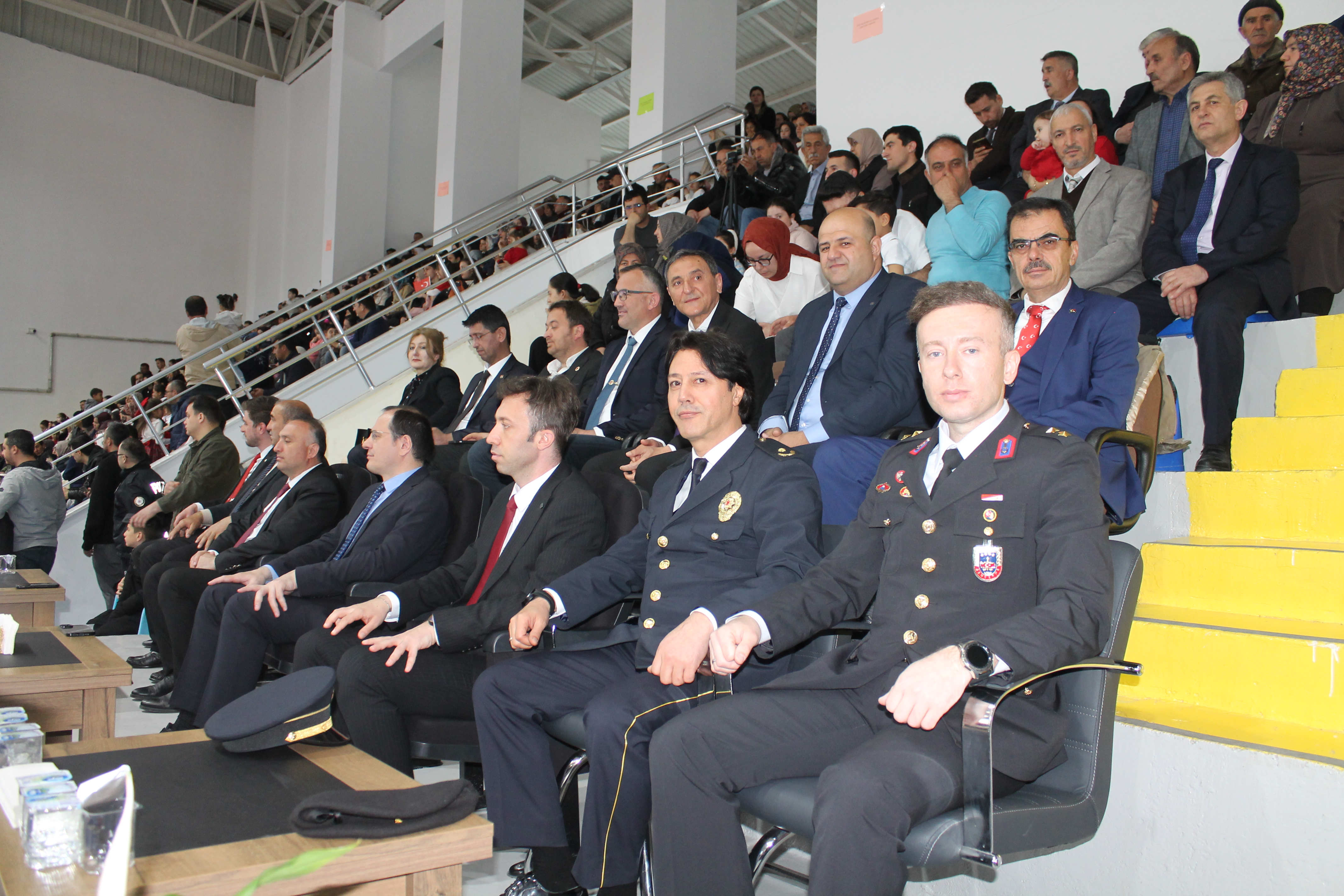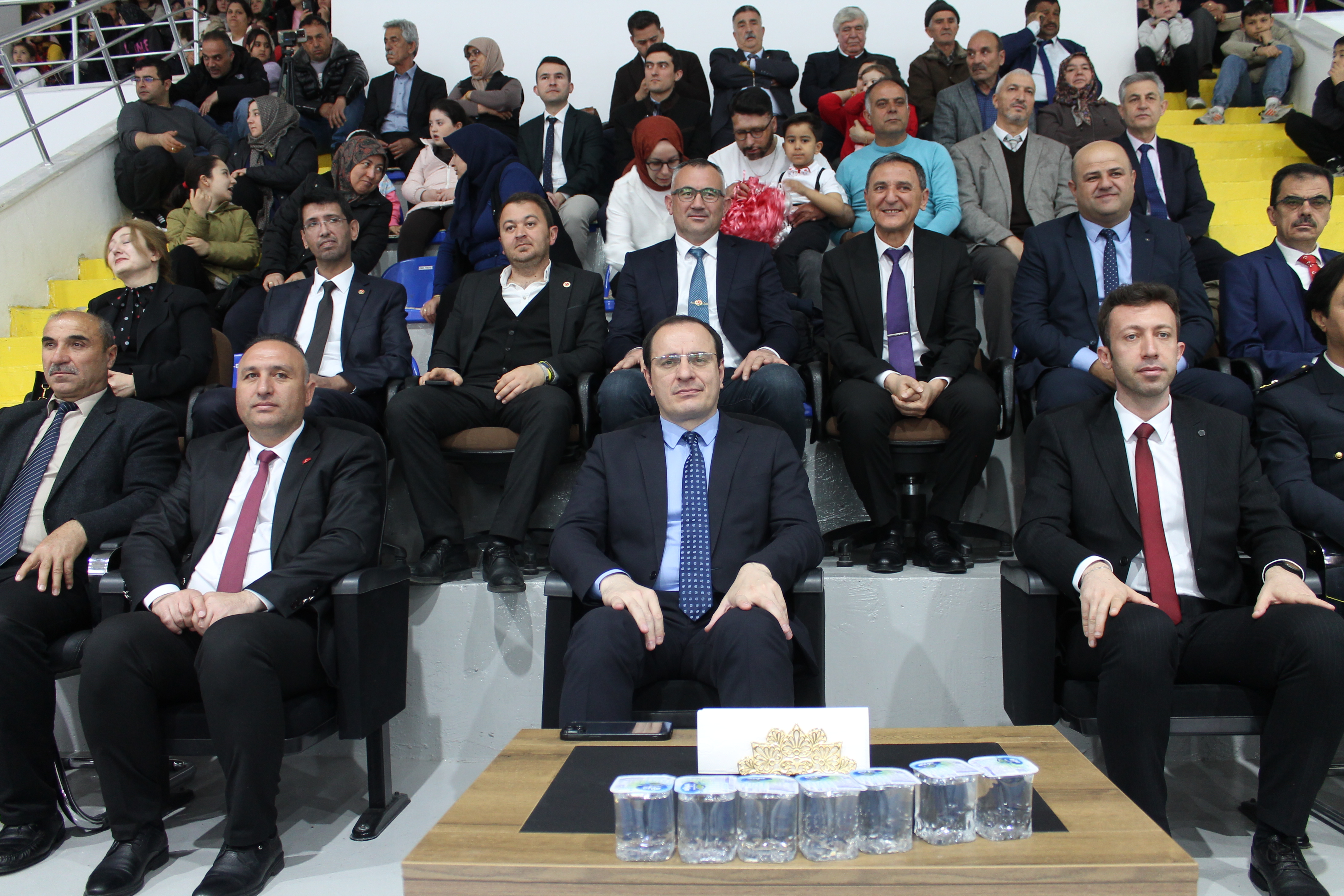 Dörtyol Meydanında Atatürk Anıtına çelenk konulmasının ardından tören Çay kapalı spor salonunda düzenlenen programla devam etti.