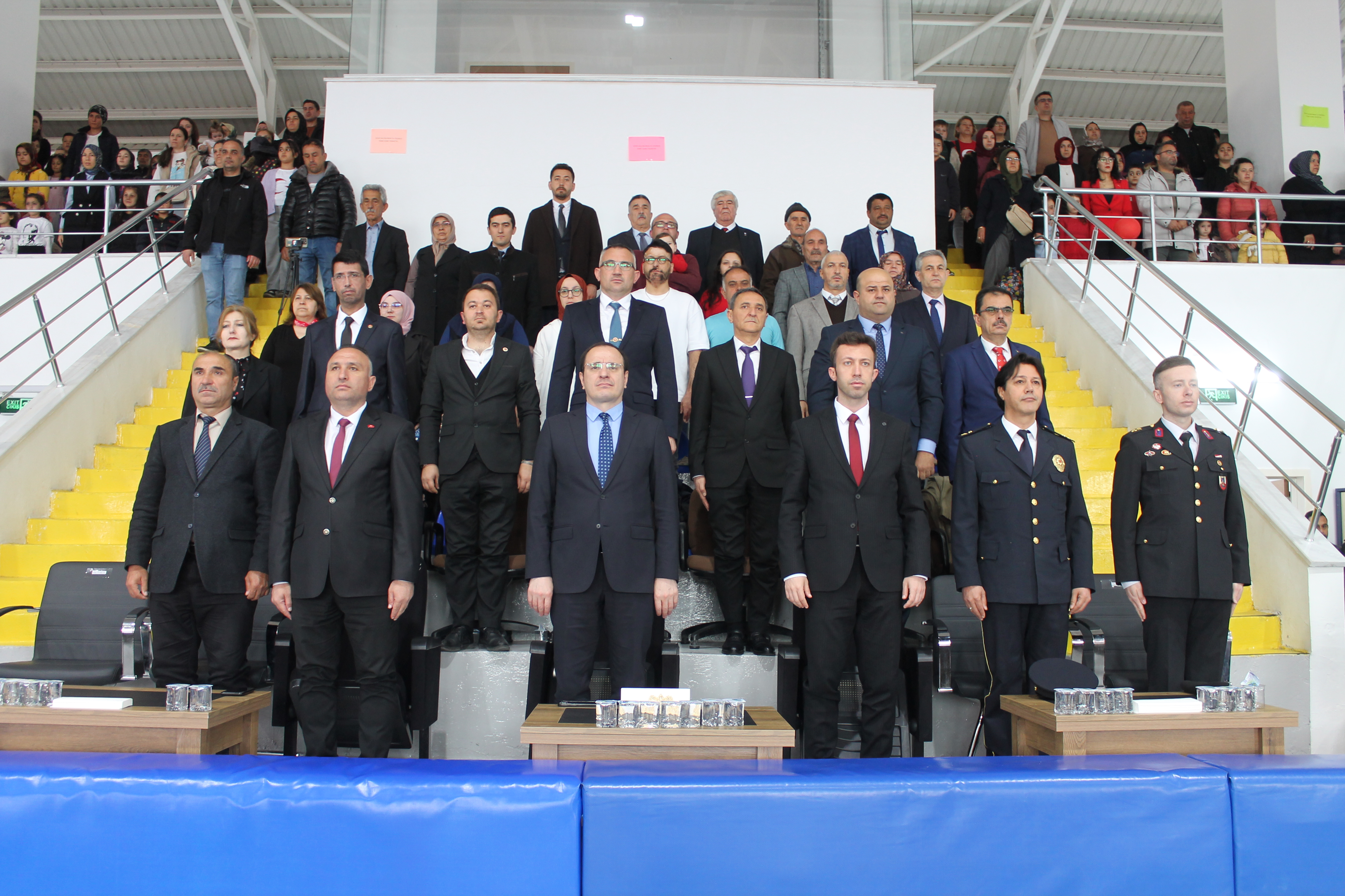 Saygı duruşu ve İstiklal marşı okunarak günün anlam ve önemiyle ilgili konuşma yapıldı.