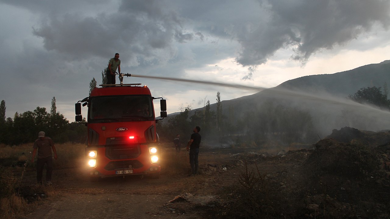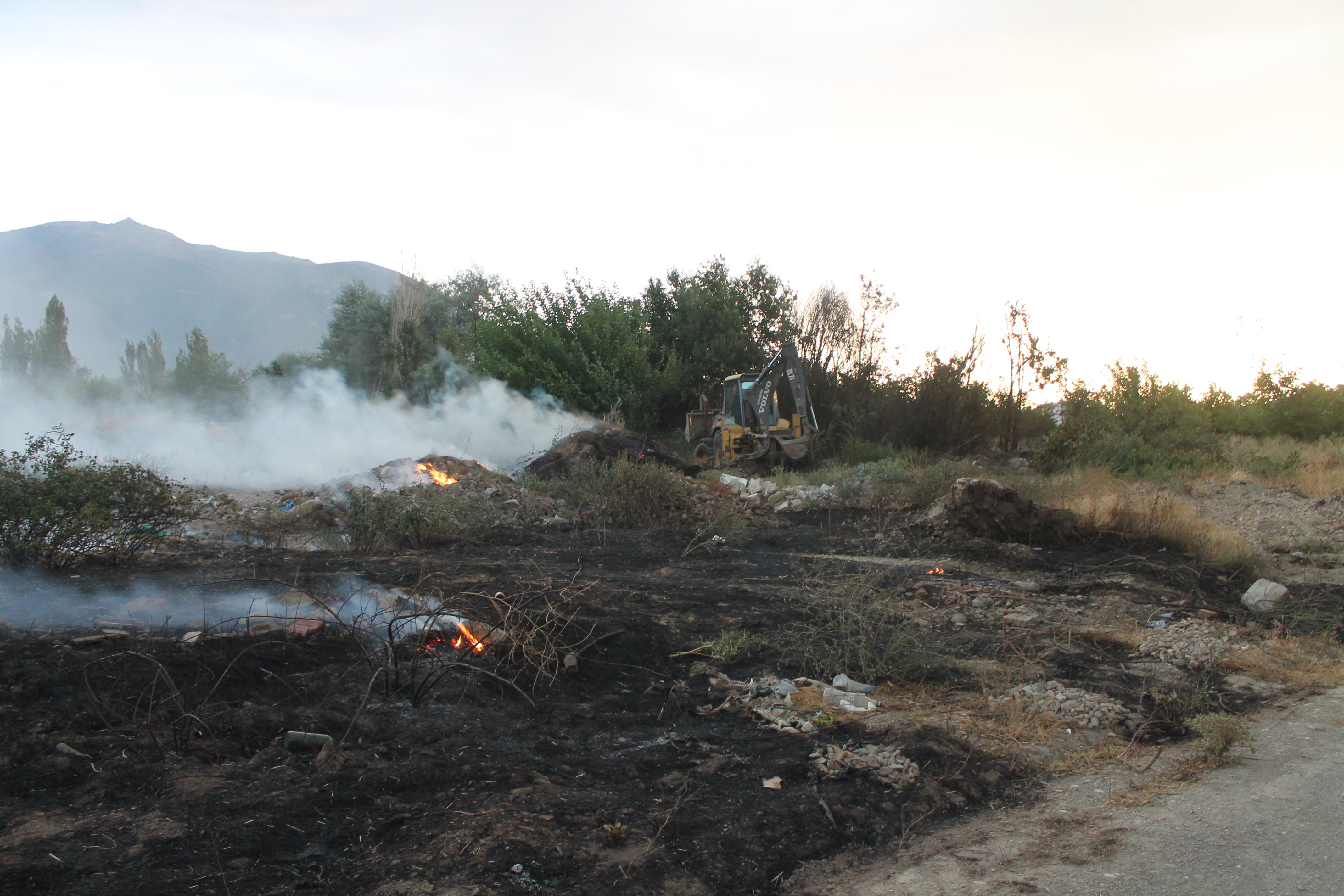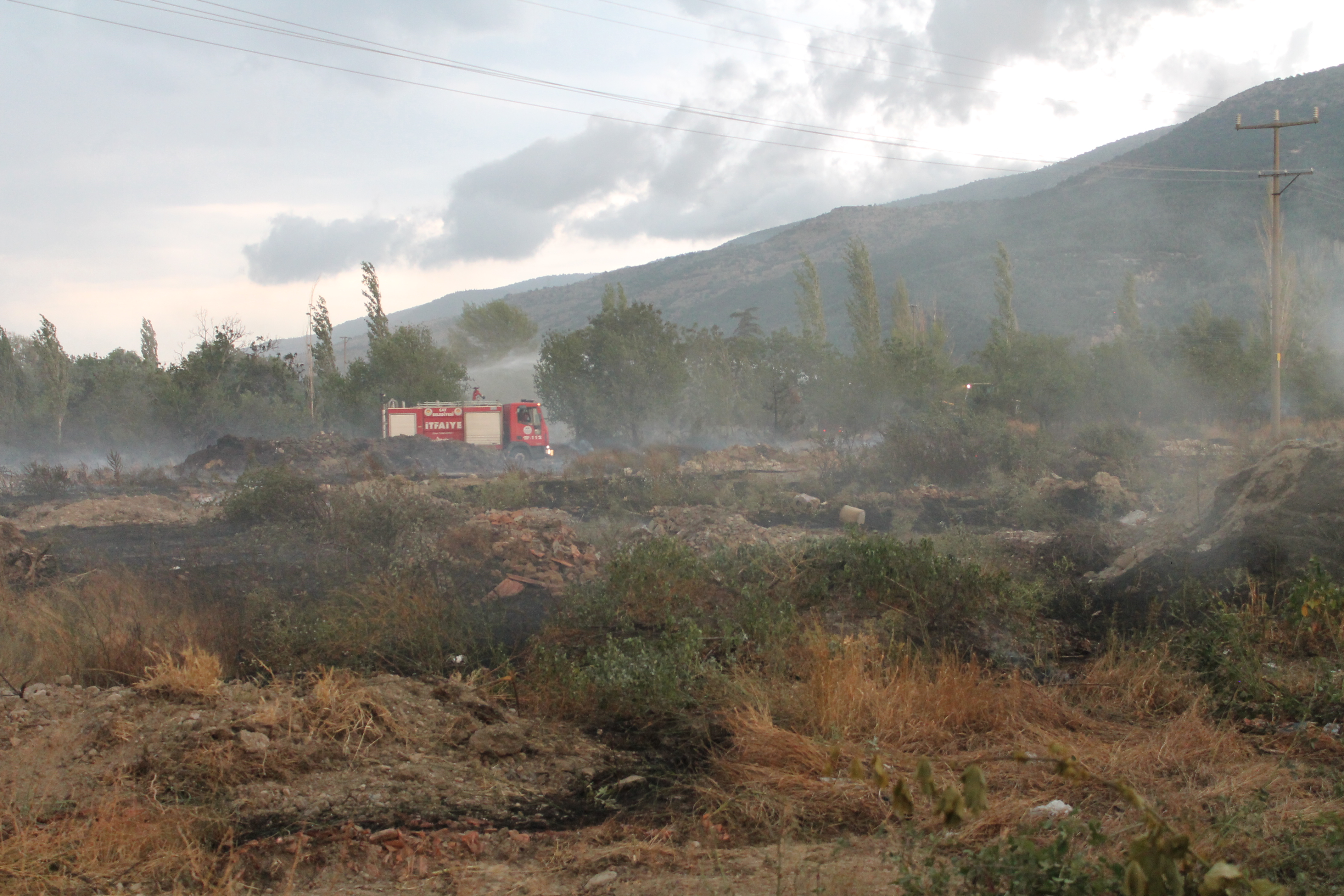 Yangın uzun çalışmalar sonucunda civarda bulunan evlere ulaşmadan söndürülerek kontrol altına alınırken soğutma çalışmaları yapıldı.