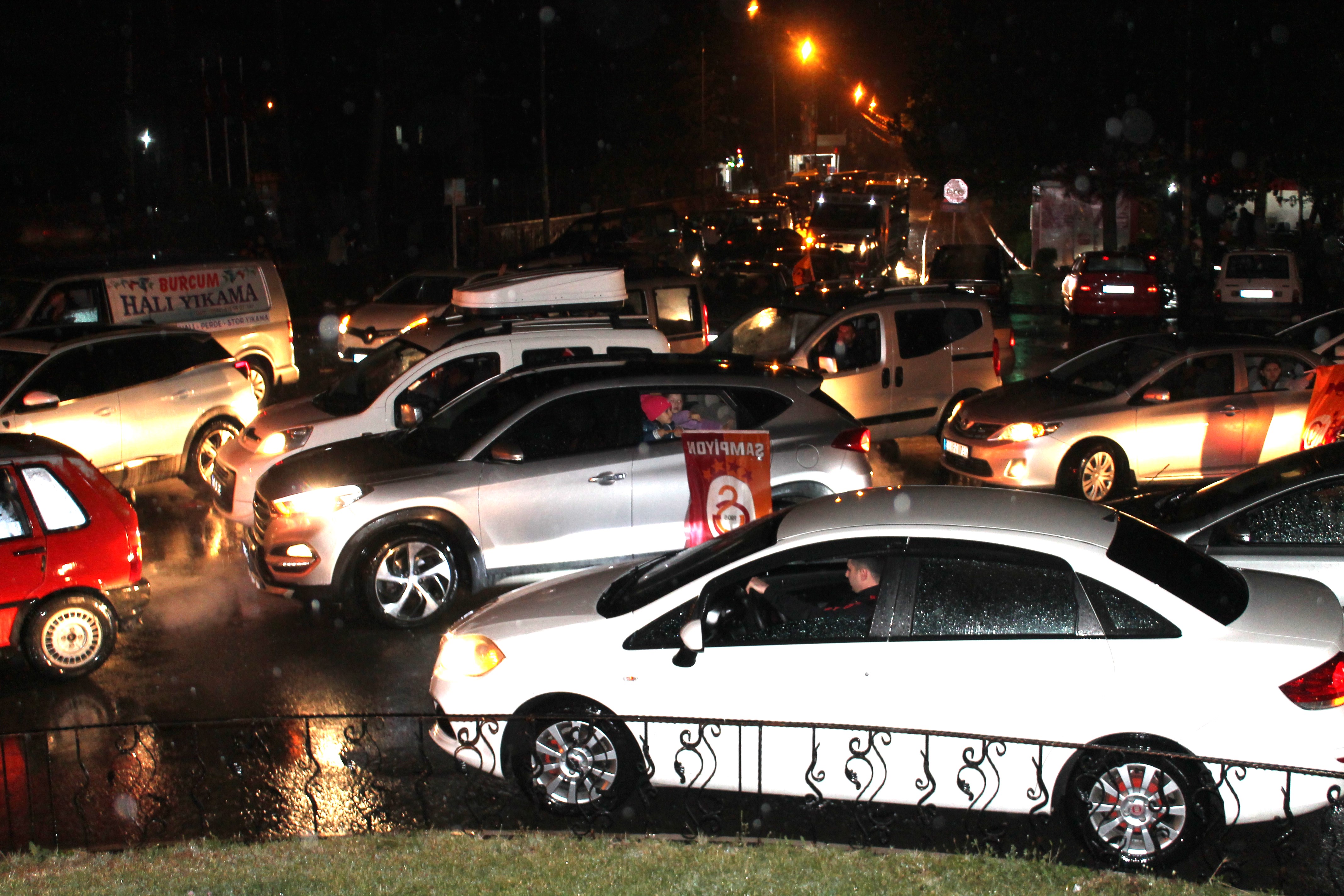 Cim bom taraftarları Yoğun yağmura aldırış etmeden kutlamalara devam etti.