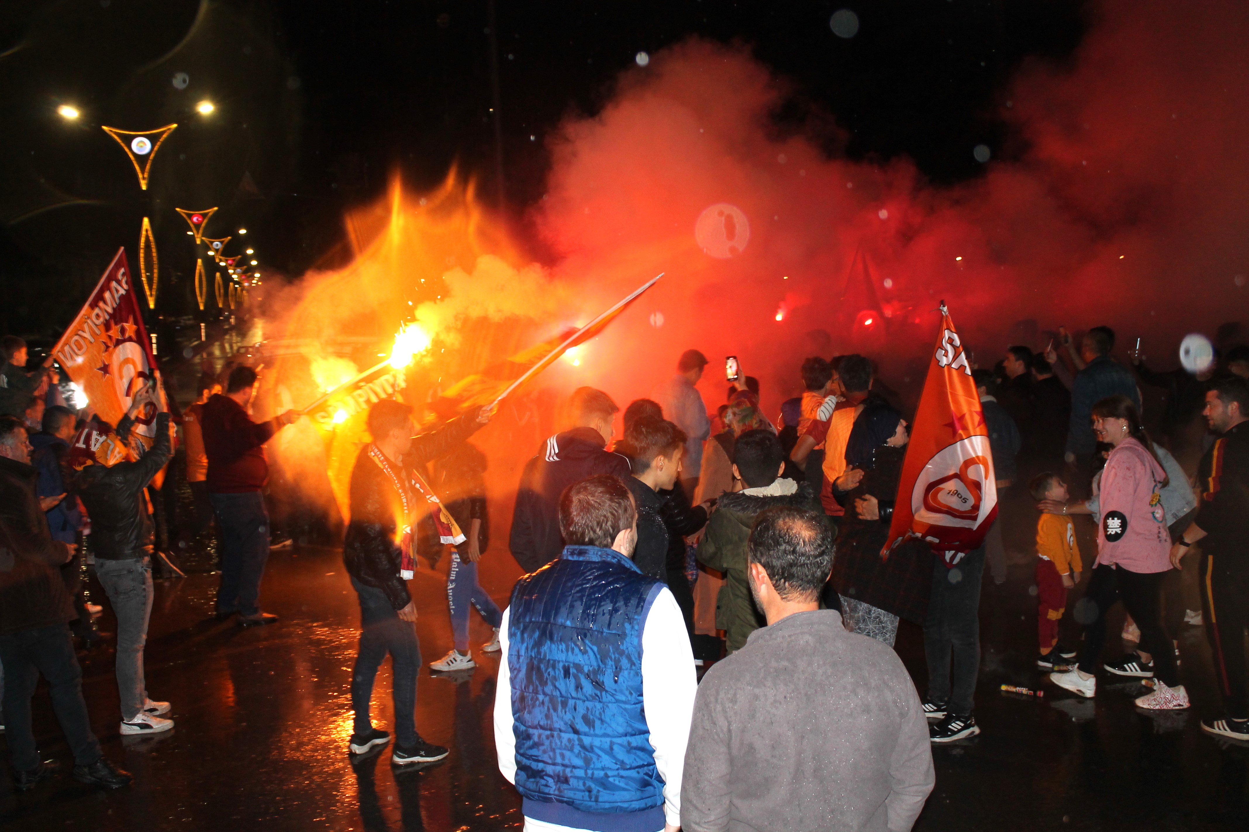 Maçın bitiş düdüğüyle birlikte yediden yetmişe Galatasaray taraftarları Çay Dörtyol Meydanına toplanarak şampiyonluğu kutladı.