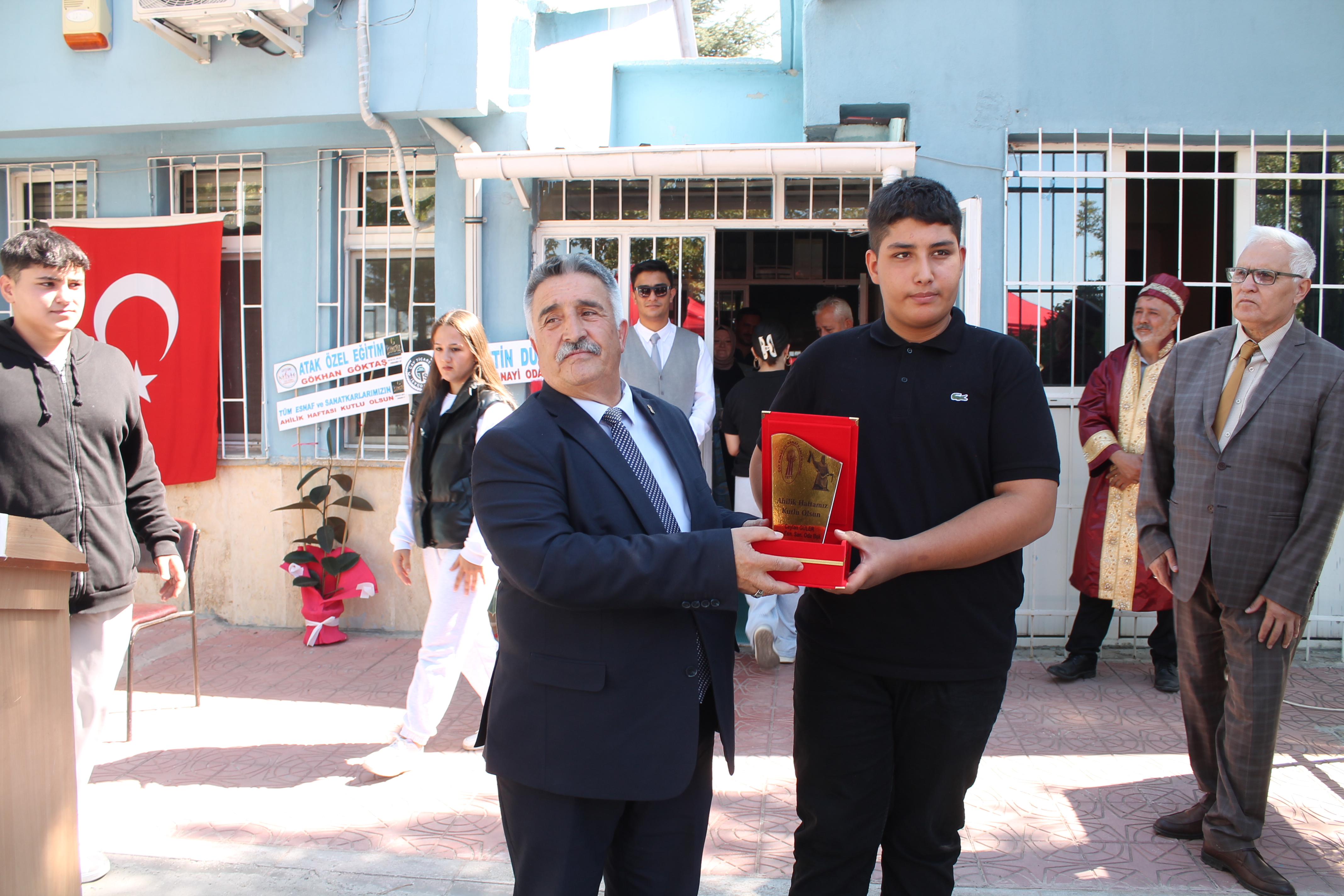 Programda Yılın Ahisi seçilen İlçe Esnaflarından Faruk Çivici ’ye kaftanını İlçe Kaymakamı Hasan Hüsnü Türker giydirdi. Yılın Kalfa ve Çırağı seçilenlere plaket takdim edilmesiyle program sona erdi.