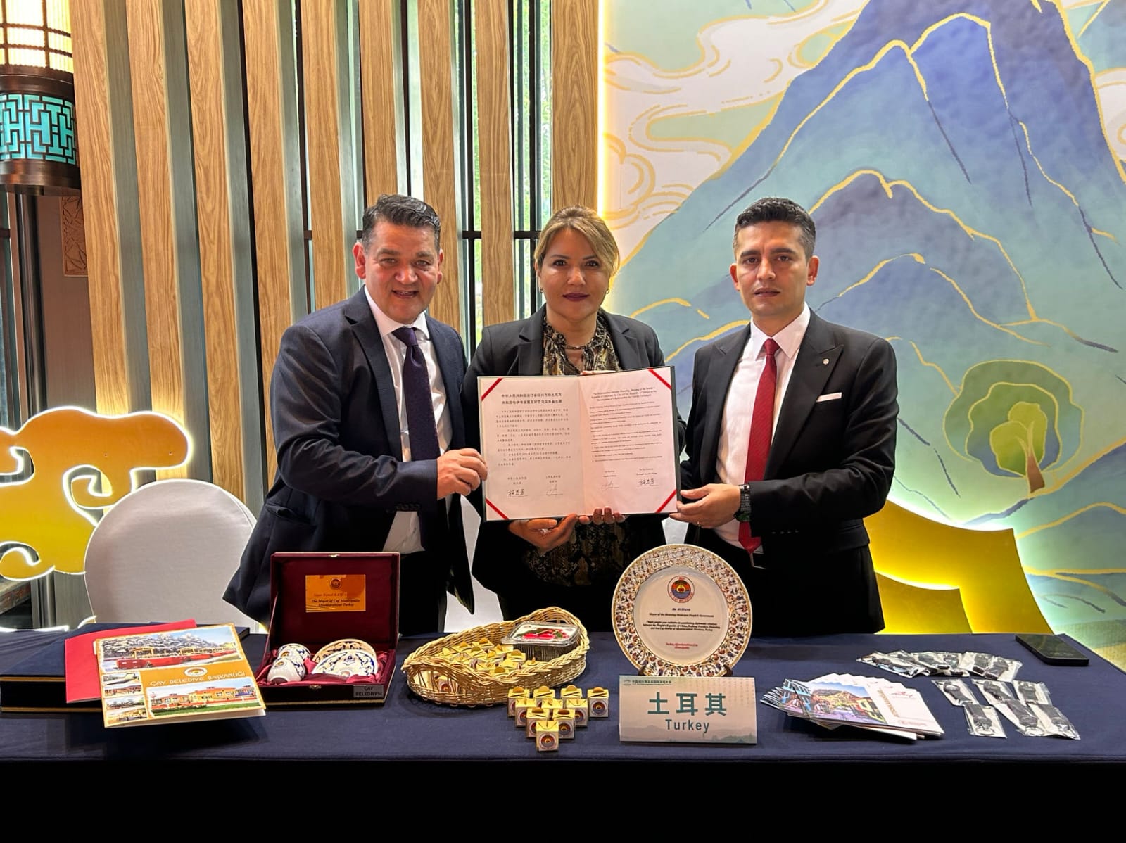 Etkinliğin ilk gününde Afyonkarahisar’ın Çay İlçesi ile Çin’in Shaoxing Şehri arasında Dostluk İşbirliği protokolü imzalandı. Protokolü Çay Belediyesi adına Çay Belediyesi Mali Hizmetler Müdürü Abdil Kara Shaoxing Belediye Başkanı Shi Huifang ile imzaladı. İmzalanan bu dostluk işbirliği protokolü Çay ile Shaoxing arasında çok yönlü işbirliği teşvik edilerek küresel ölçekte ekonomik, kültürel ve eğitimsel alışverişleri geliştirmeyi amaçlanmaktadır. Atılan bu imzalar özellikle Afyonkarahisar ve Çay için Çin ile bir köprü oluşturarak turizm, kültür ve ticaret alanların da işbirliğini geliştirmesi beklenmektedir. Çin Shaoxing basınında Çay’a ve İpek Yoluna olan ilgi oldukça yoğundu.