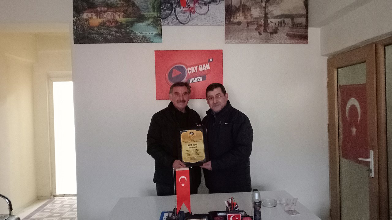 Gazeteciler ve Medyacılar Cemiyeti tarafından Basın Emek ve Onur Ödülüne layık görülen Çaydan Haber plaketini Afyonkarahisar İl Başkanı Usta Gazeteci Halil Kurt’tan teslim aldı.