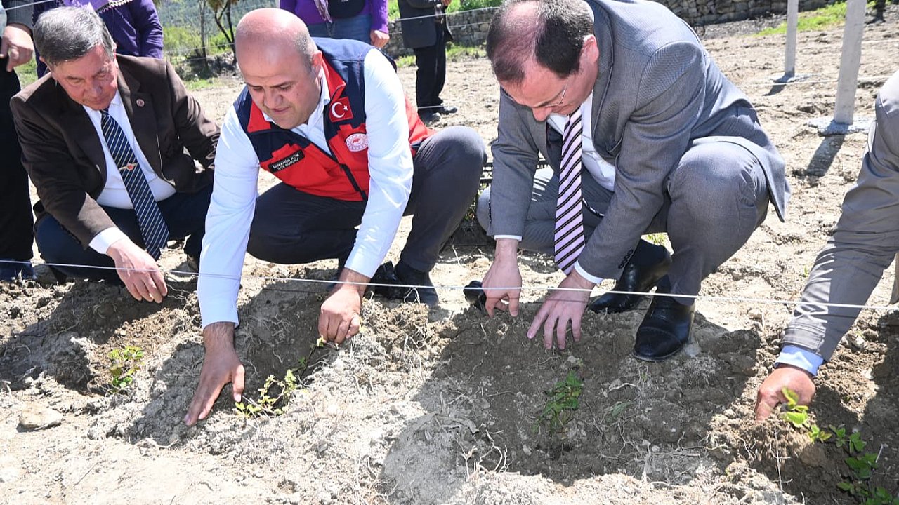 Garantili alım kapsamında 15 bin metrekare alana dikilecek olan böğürtlen fideleri pilot bölge seçilen Pınarkaya köyündeki 5 çiftçiye teslim edildi.