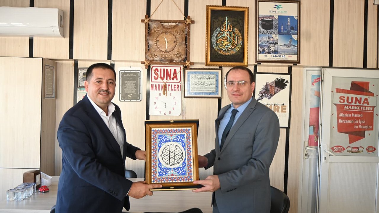 İlçe Kaymakamı Hasan Hüsnü Türker, Suna Marketlerin sahibi Yakup Suna'ya iade-i ziyarette bulundu.