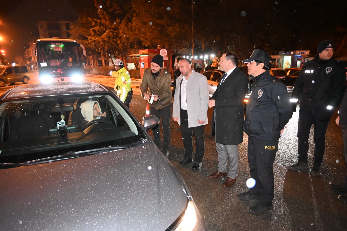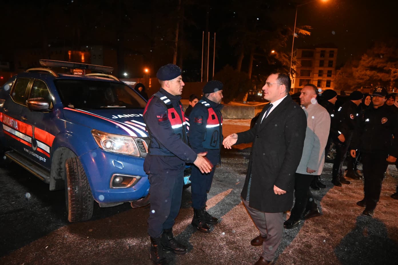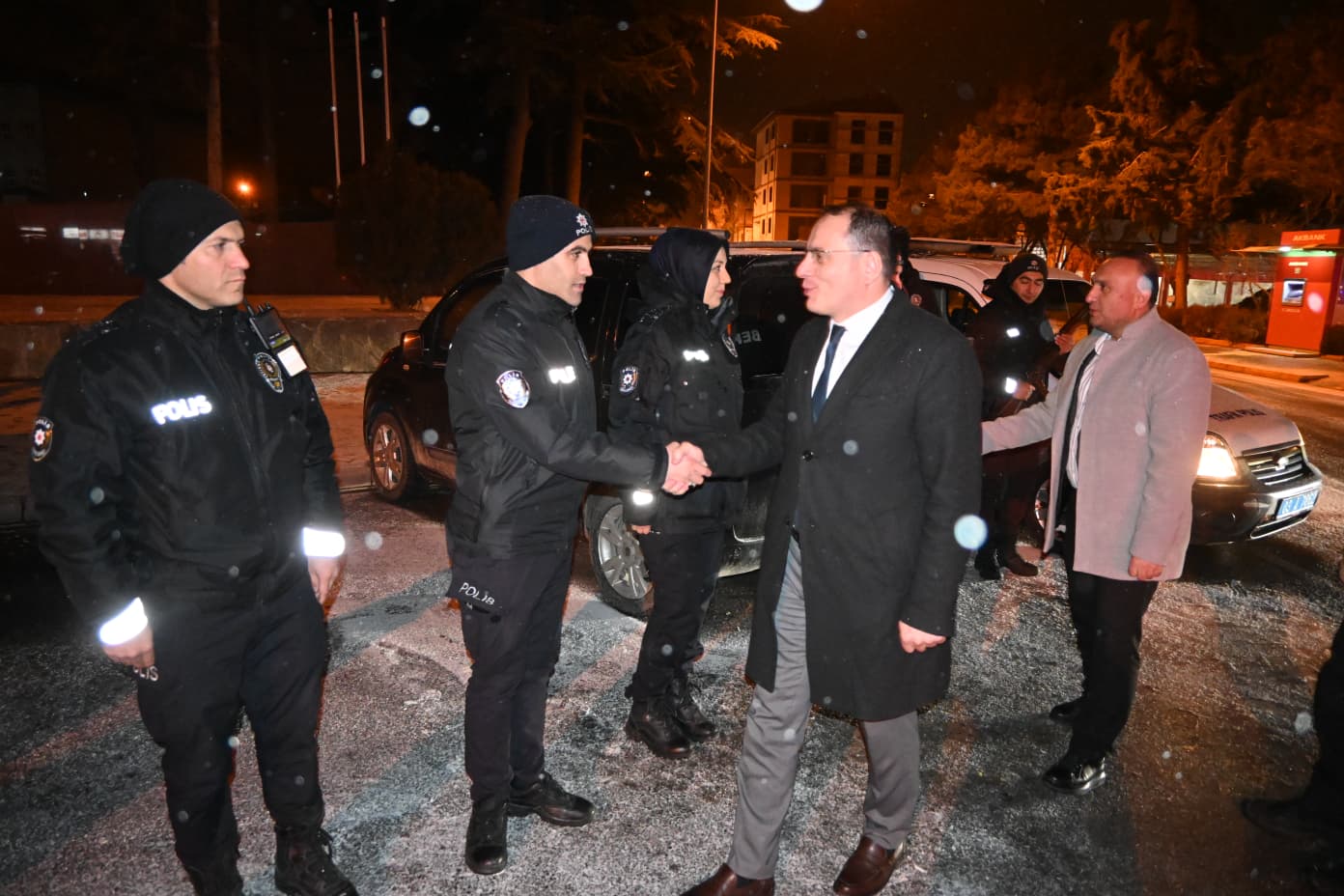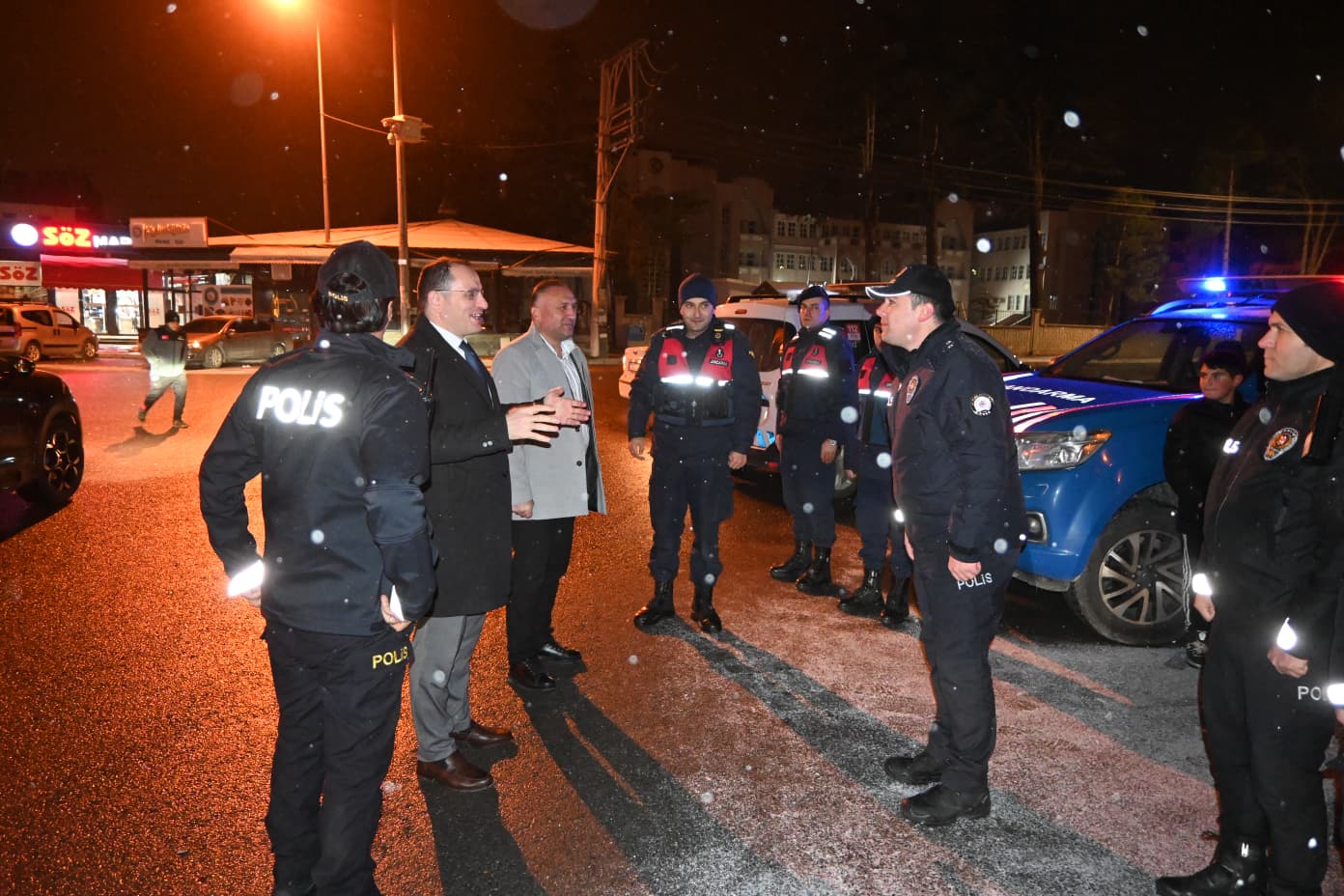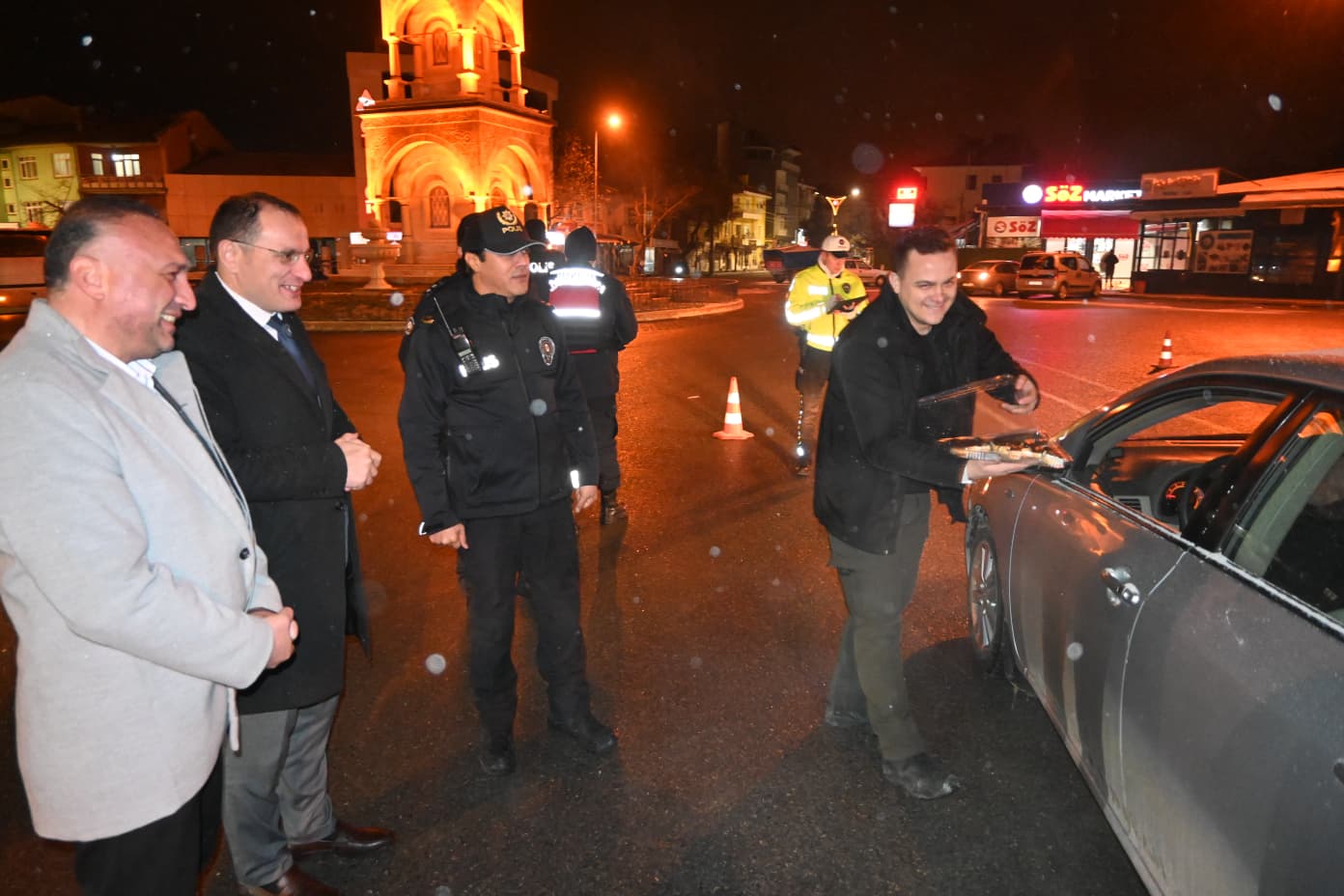 Hastane ziyareti sonrası ilçedeki uygulama noktalarını ziyaret eden Kaymakam Türker; Vatandaşların huzur içinde yeni yıla girmeleri için, ilçe merkezi ve ilçenin giriş çıkışlarında kontrol yapan İlçe Emniyet ve Jandarma personelini görev yerlerinde ziyaret ederek yeni yıllarını kutladı.