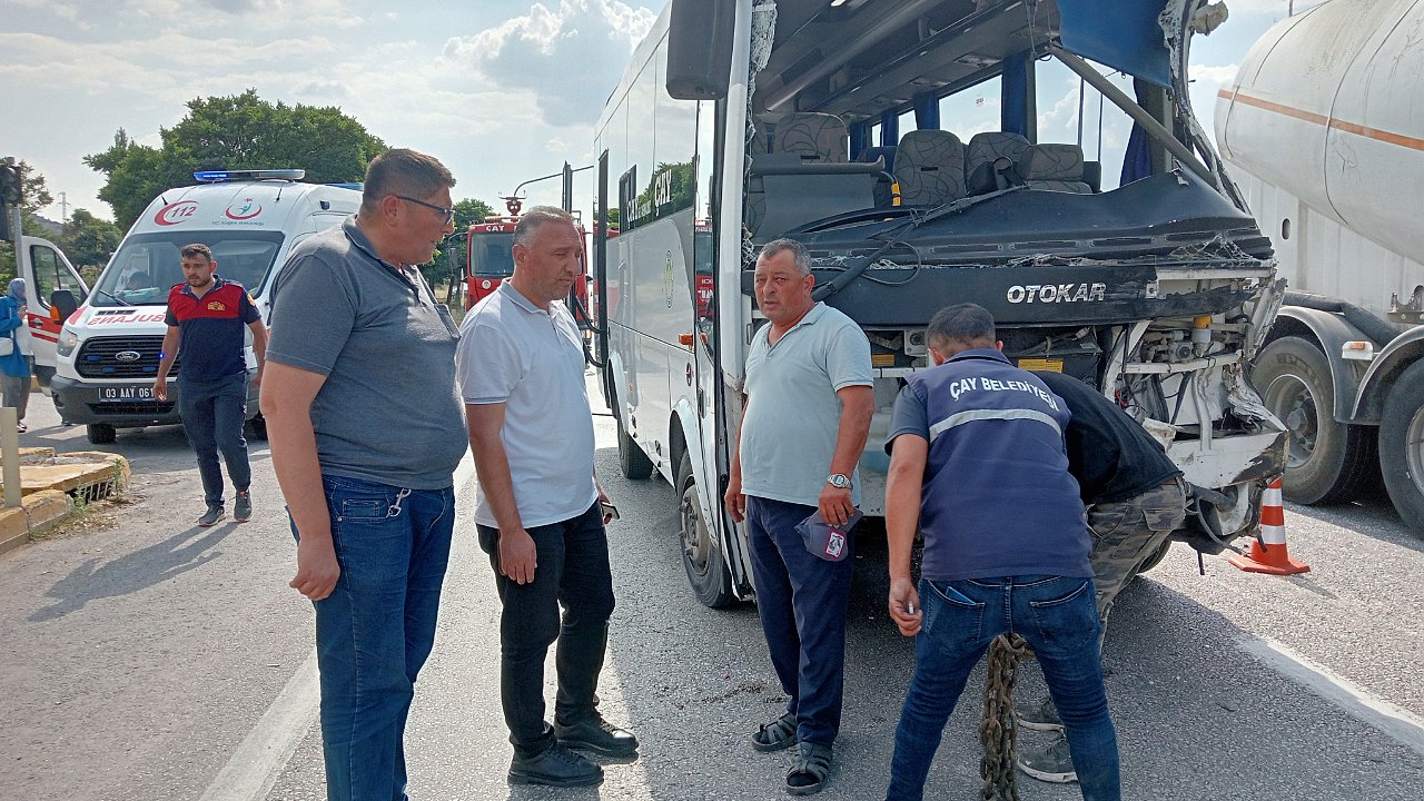 Edinilen bilgilere göre Çay Belediyesine ait yolcu otobüsüyle kamyonun çarpışması sonucu 7 kişi yaralandı.